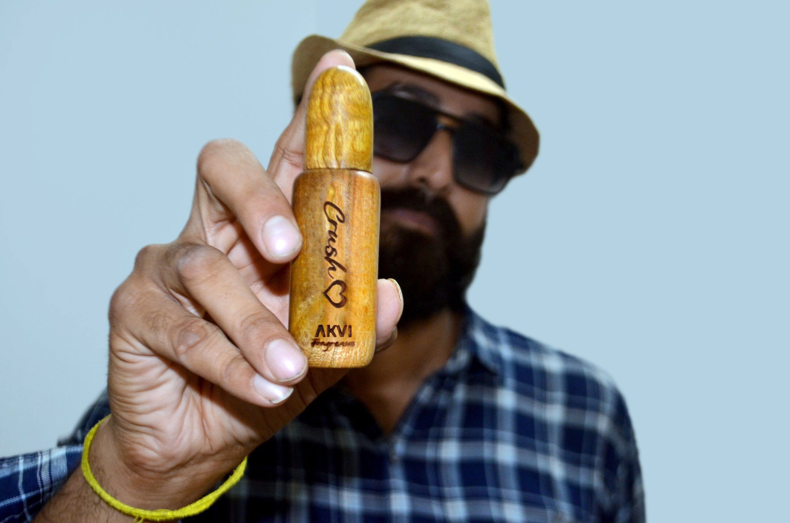 Housed in an engraved wooden bottle that makes a bold fashion statement.